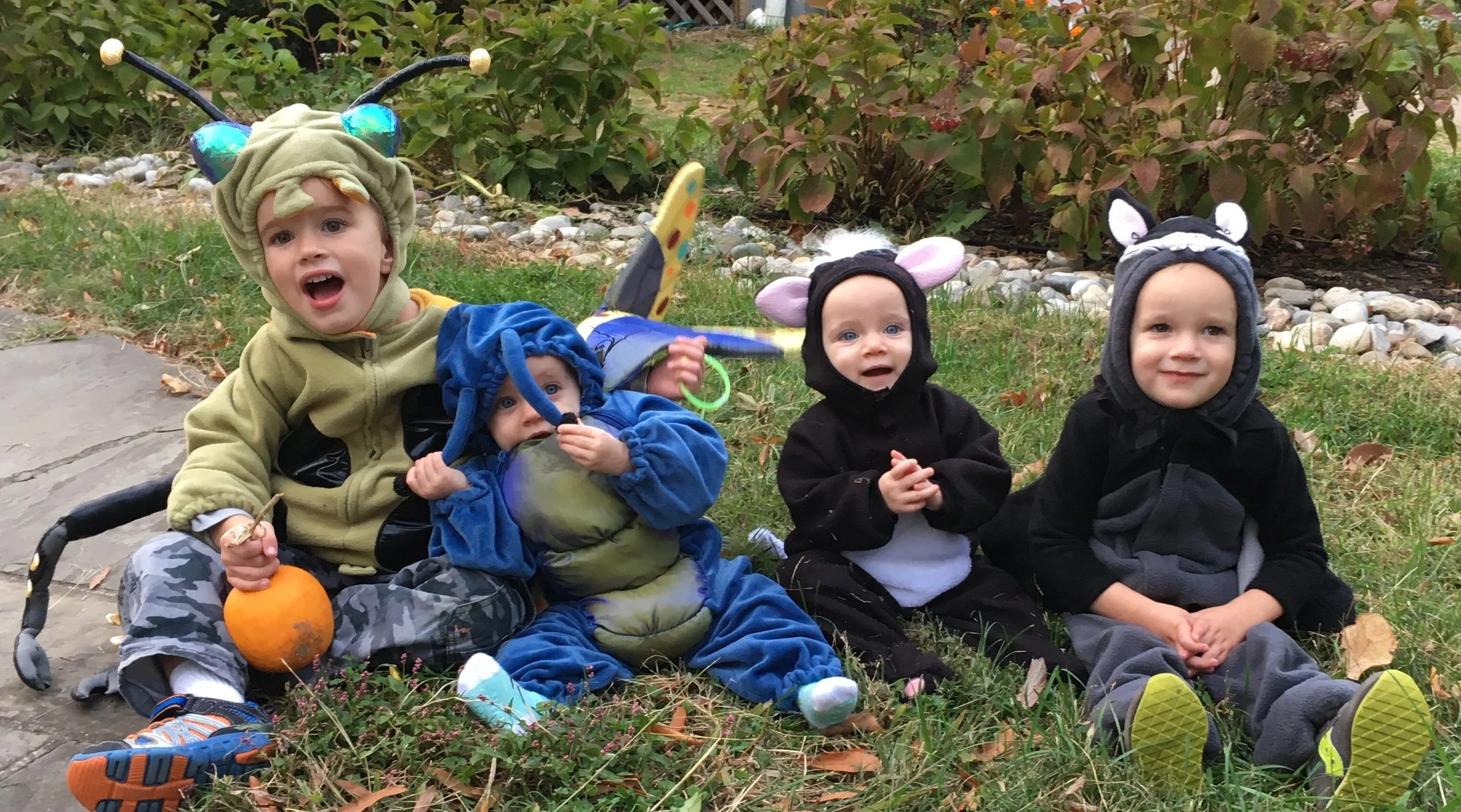 Trick-or-treating with our neighbors! We have a few fantastic neighbors, with kids about the same age as ours, and we’ve all gone out together since our first babies were born. After the kids are in bed, the adults sit out front (with baby monitors) and enjoy handing out treats to other kids. Here are all my “critters” from last year!